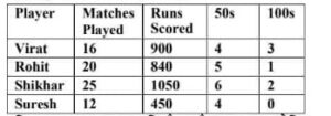 84. विराट द्वारा 16 मैचों में बनाए गए रन, शिखर द्वारा 25 मैचों में बनाए गए रन से कितने कम हैं?