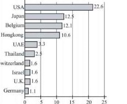 99. हांगकांग को किया गया निर्यात जर्मनी को किए गए निर्यात के लगभग कितना गुना है?